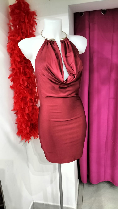 Abito Lungo Elegante , Rosa con scollo all'americana
